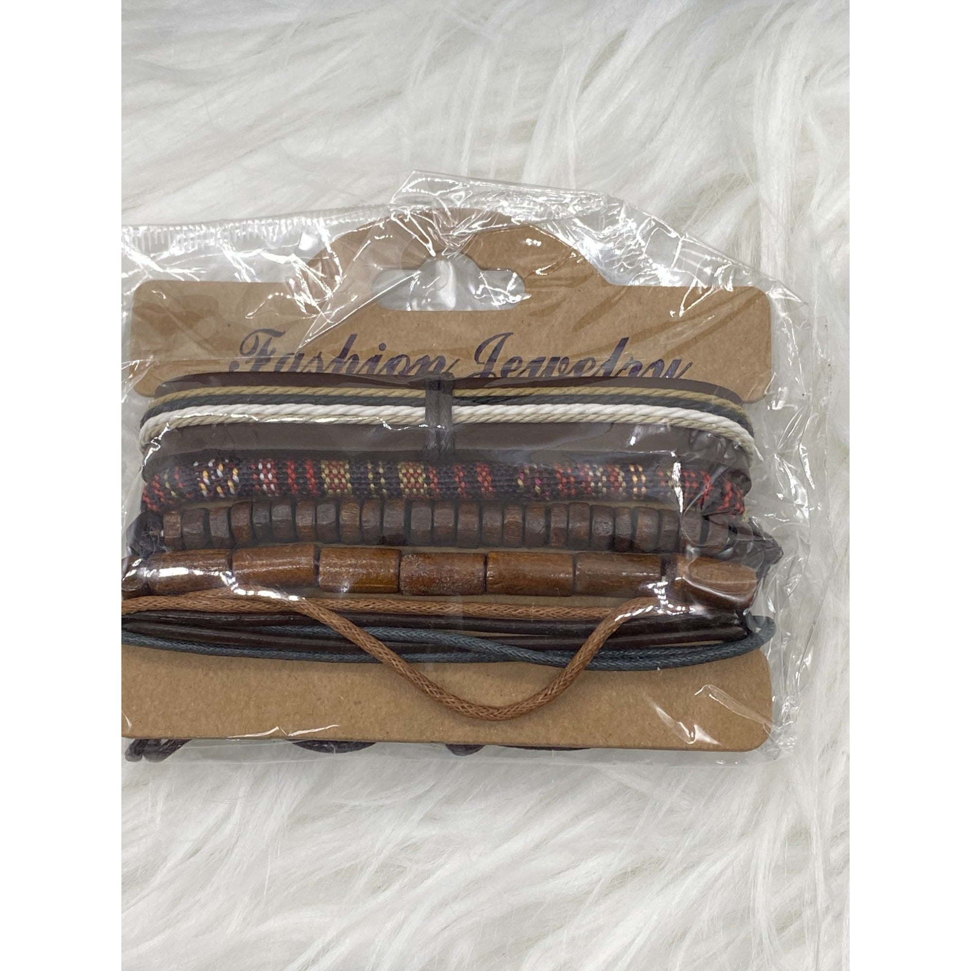 Fashion Jewelry Multilayered Cuff Bracelet Leather Stack Brown Beads Rope Mix -