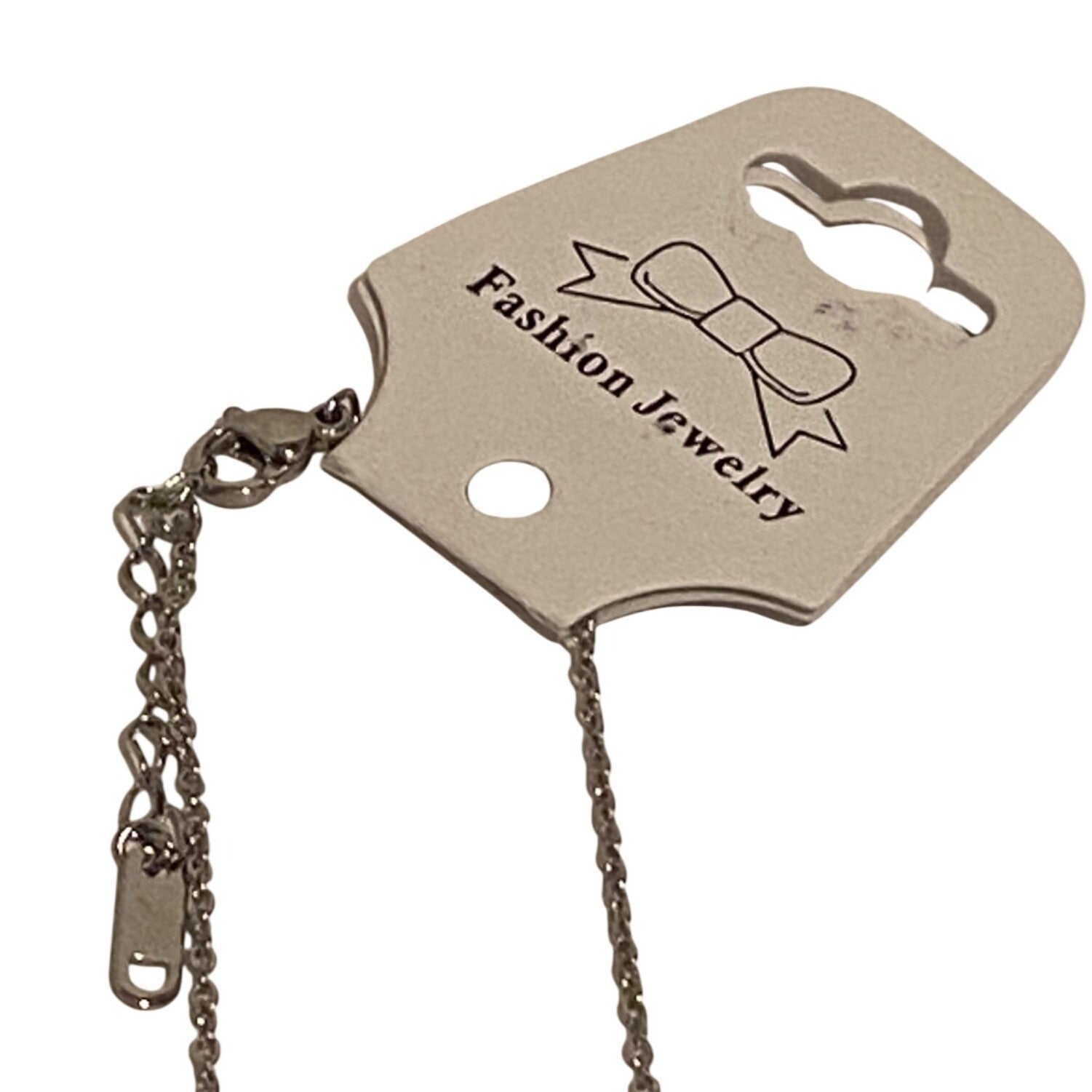 Fancy Zircon Bar Necklace Silver Titanium Steel Chain Sparkle Accent For Women -