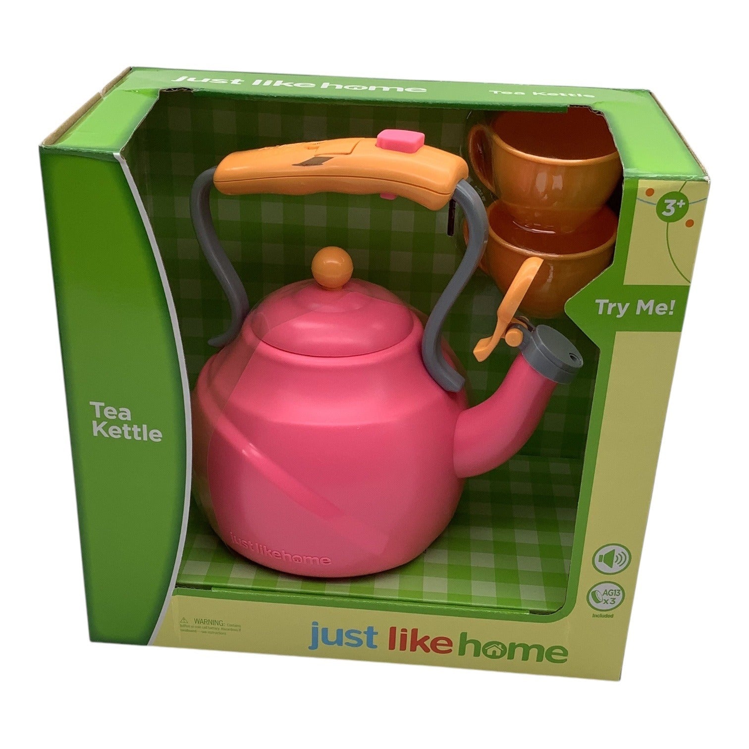 Just Like Home Tea Kettle Toy Set W/ Cups Kids Ages 3+ Pink/Orange Fun Role-Play -